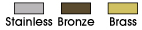 Available in 304 Stainless Steel or Bronze and Brass in finished aluminum.