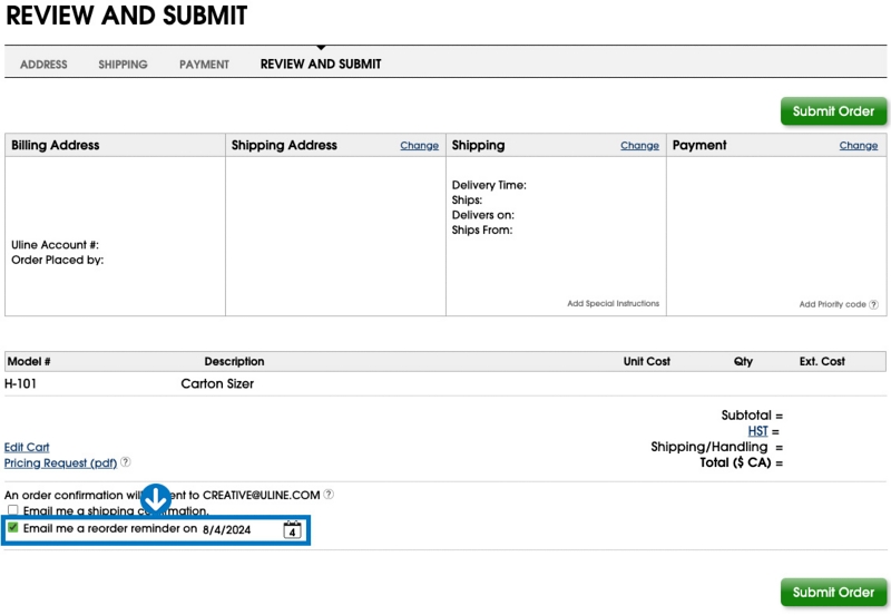 A reminder is sent to you via email with a link to the shopping cart prefilled with your previous order's items.